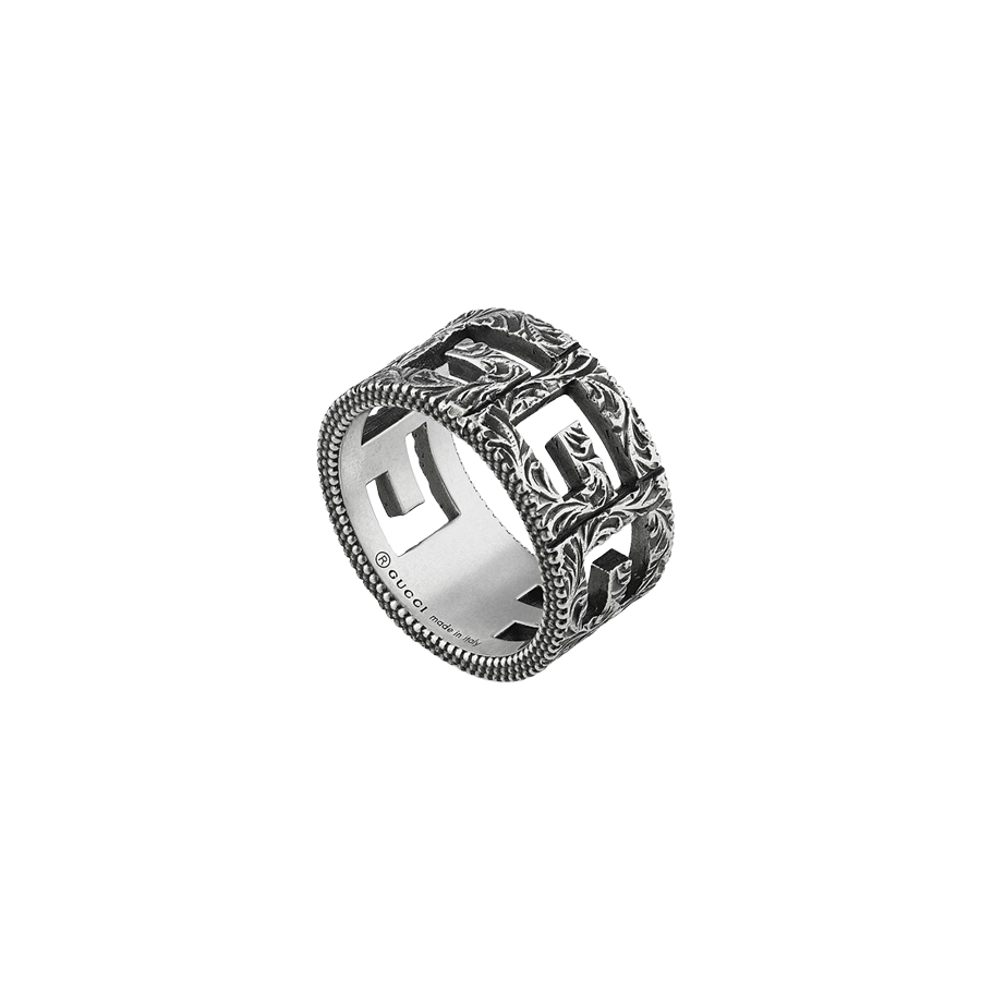 Gucci G Cube Ring in Aged 925 Sterling Silver ; Band 11mm.
